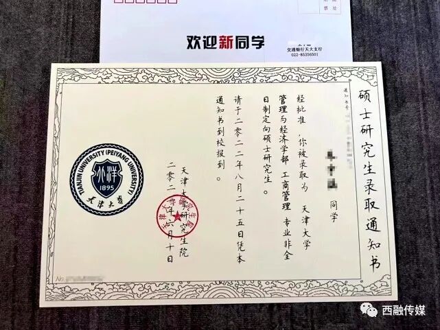 据介绍,今年硕士研究生的录取通知书EMS封面采用了全新设计,以天大校园标志性建筑为底图,分蓝、红两种版本,简约精致。天津大学表示,新生收到通知书后,可关注天津大学研究生招生网(网址:https://yzb.tju.edu.cn)新生报到相关通知,完成档案转递、组织关系转接、户口迁移等事宜。